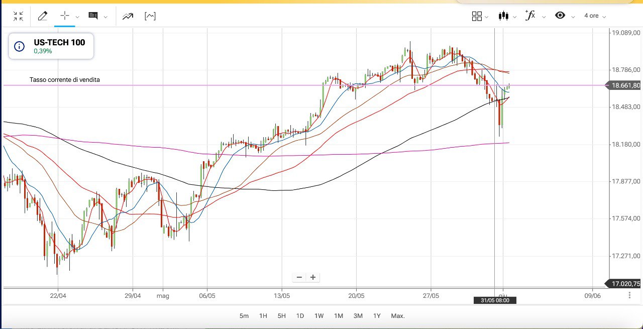 Non è escluso dunque che se il SUPPORTO dei 18250 punti circa si manterrà tale il NASDAQ 100 potrebbe fare nuovi MASSIMI.