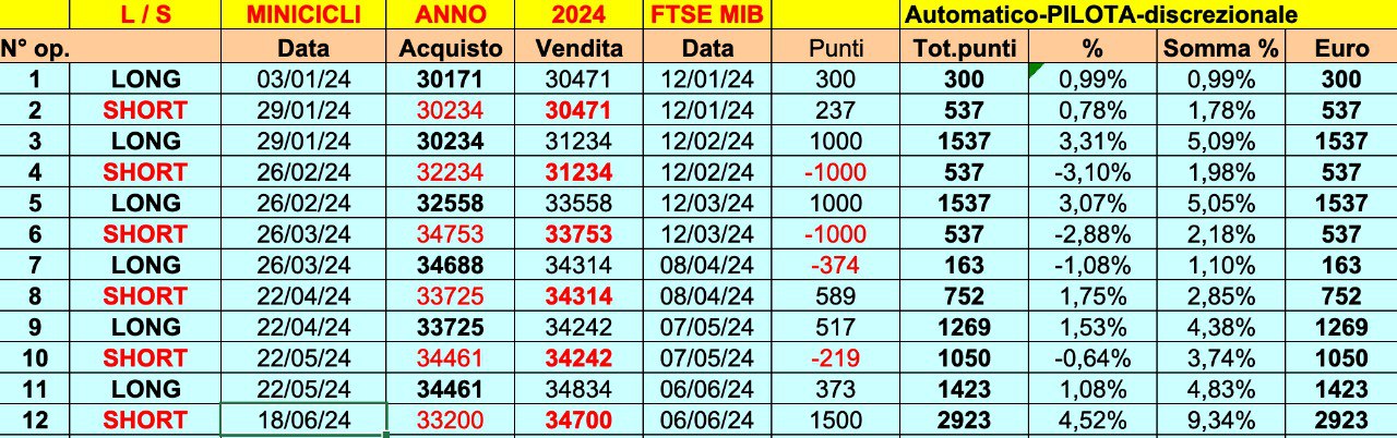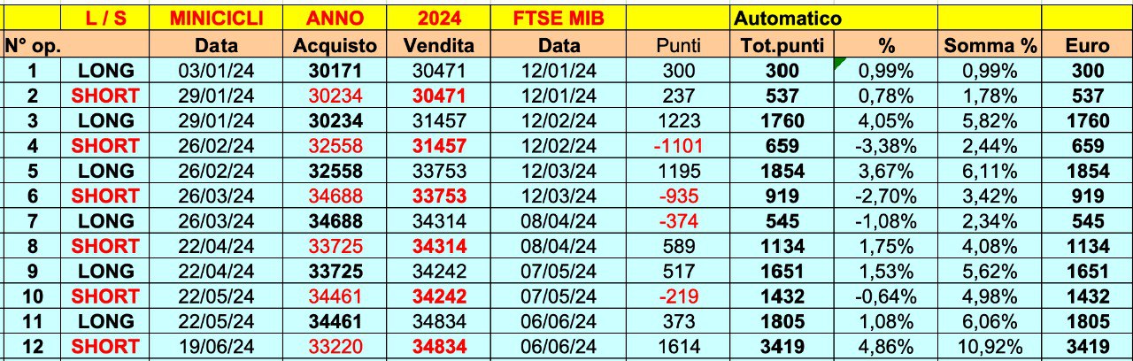 Ricordo che l’obiettivo IDEALE e “storico” sul FTSE MIB è conseguire quei 5000-6000 punti/euro annuali applicando le ONDE dei MINICICLI.