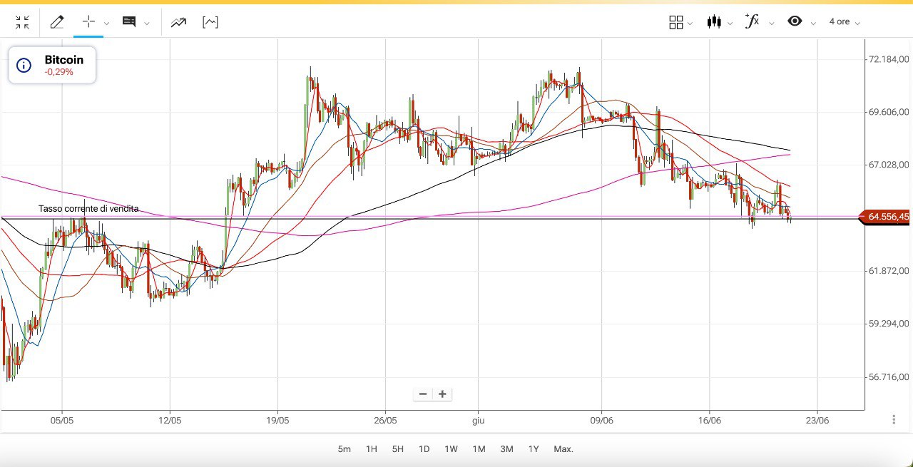 E’ stato ritestato nella notte un precedente massimo attorno ai 64500 dollari, che ha temporaneamente funzionato da SUPPORTO.
