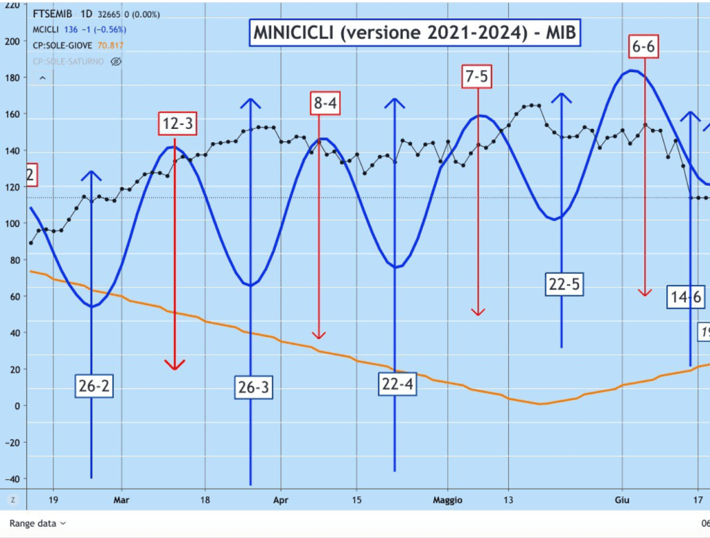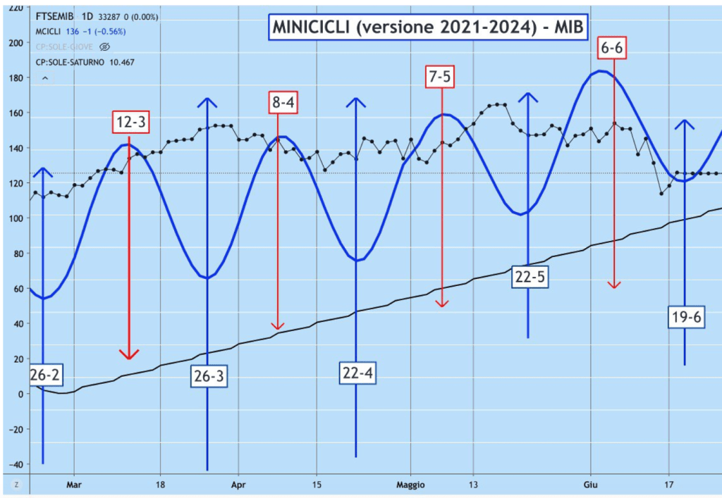 Dopo la potente discesa di Venerdì su MIB e DAX (ma in particolare sul MIB italiano) è stato valutata una PRE-INVERSIONE al RIALZO, in direzione della prossima ONDA dei MINICICLI che terminerà attorno al … (la data è conosciuta in anticipo dagli ABBONATI).