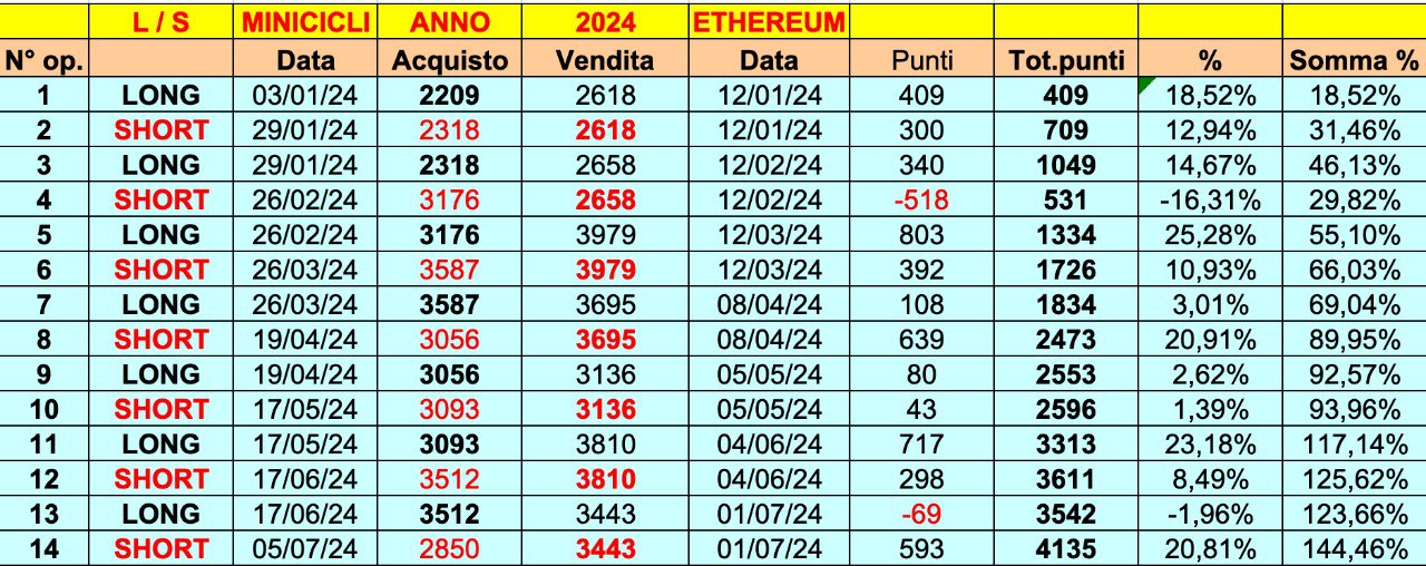 Restando in TEMA di MINICICLI non vi è dubbio che le criptovalute ed in particolare ETHEREUM siano davvero in SINTONIA….