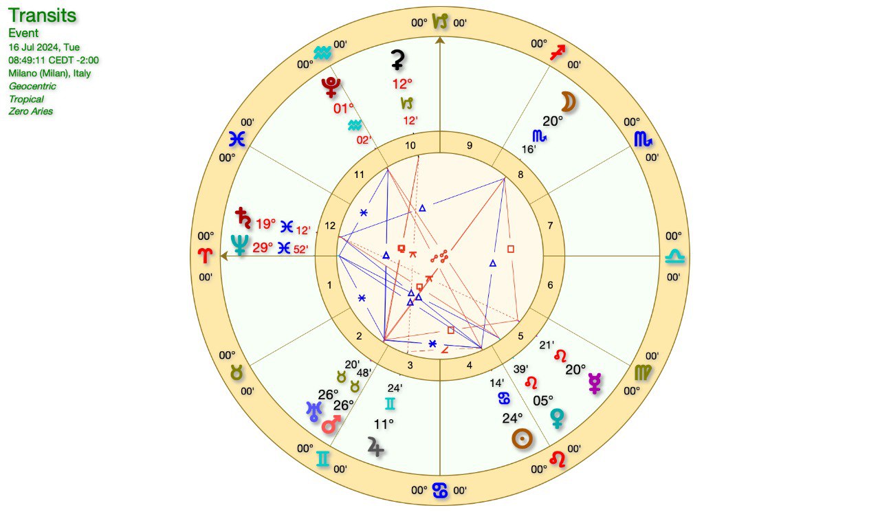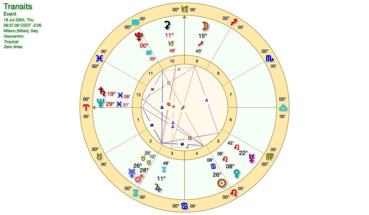 Un’occhata al grafico astrologico con la LUNA in SCORPIONE in QUADRATURA a MERCURIO e quest’ultimo in QUADRATURA a MARTE-URANO.