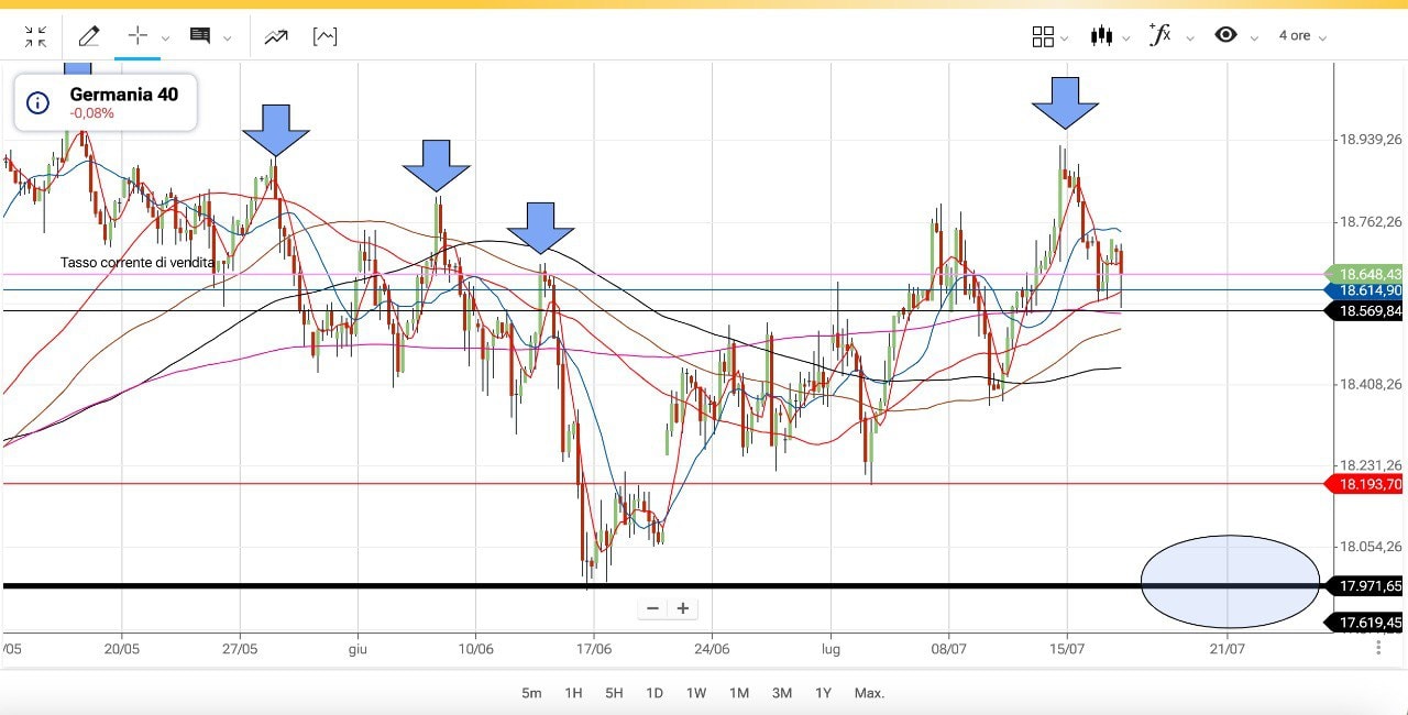 Vediamo anche il DAX, ultimamente molto meno mobile del MIB.