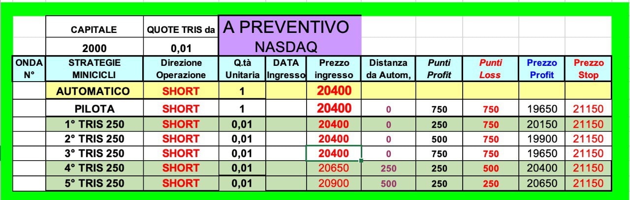 Utilizzando le STRATEGIE a QUOTE si sarebbe perfettamente presa anche l’ oscillazione contraria perchè il NASDAQ era salito fino ai 21000 punti.