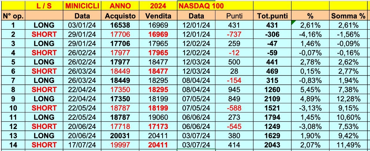 Questo è il riepilogo dell’AUTOMATICO sul NASDAQ 100 da inizio anno, con +2000 punti e 9 onde positive su 14.