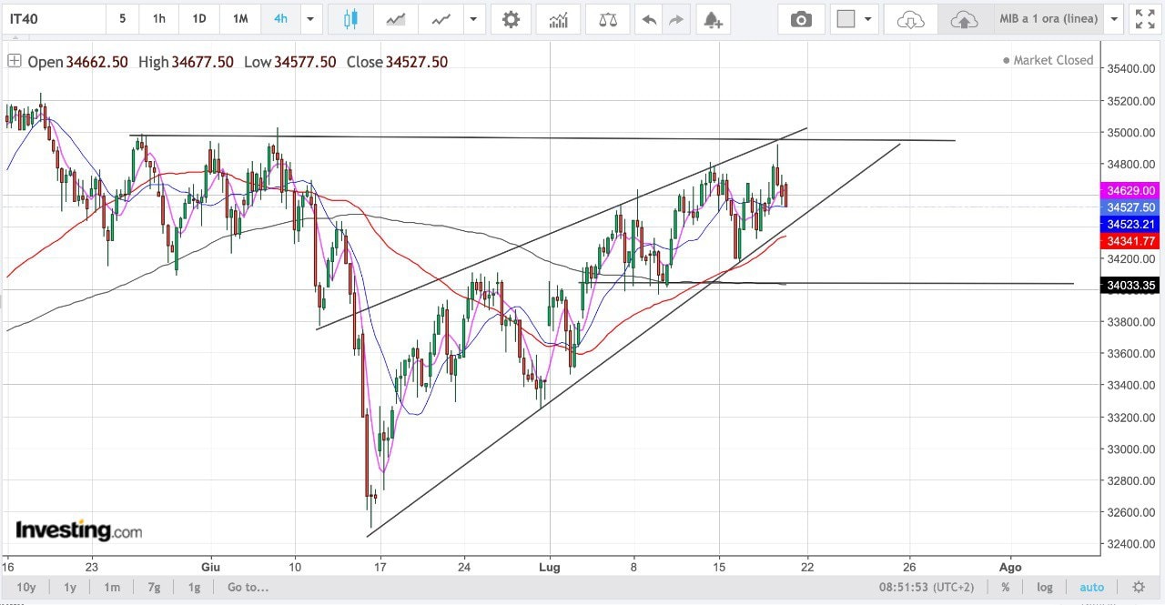 La prospettiva è che il MIB possa ridiscendere verso i 34000 punti dove si era formato un supporto.