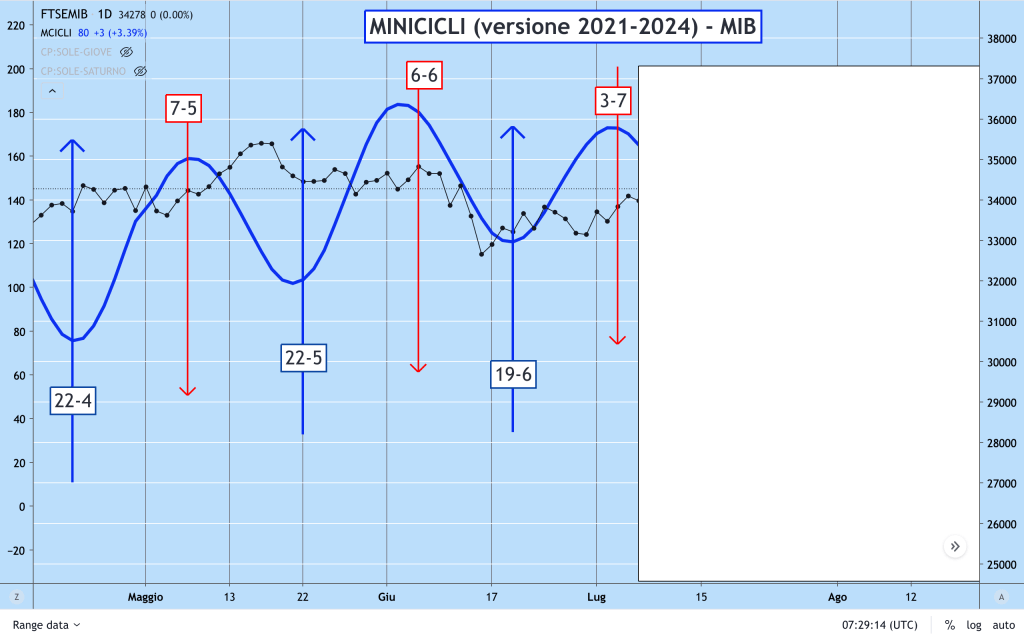L’ONDA dei MINICICLI prosegue al RIBASSO indicativamente fino al … di Luglio ma abbiamo già esteso l’orizzonte temporale delle ONDE fino a metà Agosto.