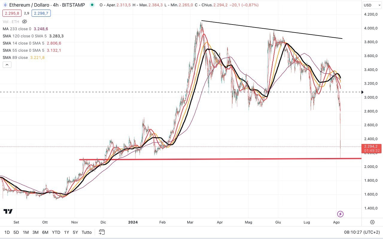 Qui siamo ancora in fase di rimbalzo dopo il profondo MINIMO fatto poco sopra i 49000 dollari.