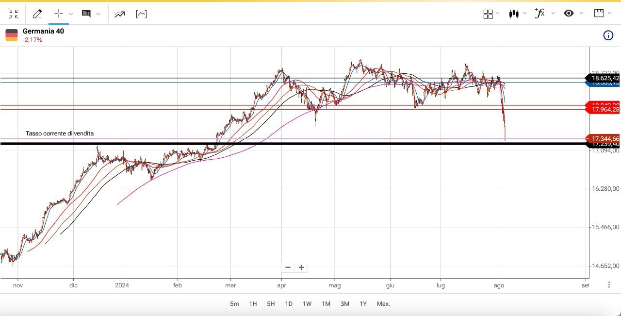 Anche il DAX ovviamente ha aperto piuttosto in basso e si trova ora a 17350-17400 punti circa.