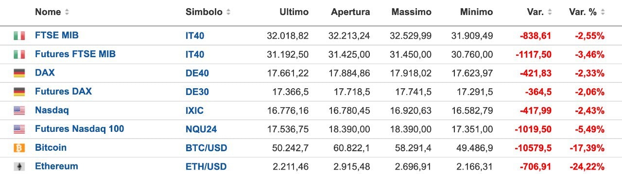Apertura di settimana fortemente ribassista su tutti i mercati….