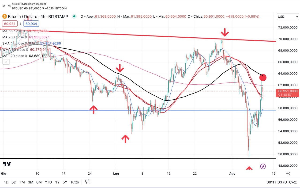 Ora siamo sulla soglia dei 61000 dollari, in prossimità di una possibile RESISTENZA.