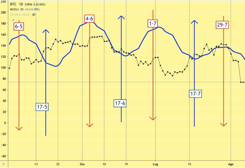 La situazione tecnica, come ho spiegato in alcune COACHING individuali (a proposito potete richiederle liberamente) resta piuttosto “compromessa”, con il rischio di nuovi affondi verso il basso, specialmente da qui a fine SETTEMBRE – inizio OTTOBRE, dove da DUE ANNI riscontriamo dei MINIMI piuttosto importanti.