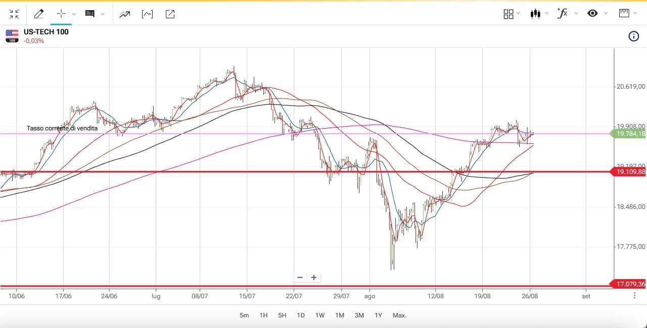 Dai 20000 punti del giorno 22 Agosto infatti, il NASDAQ era sceso di 500 punti per poi recuperare parzialmente tornando verso i 19800 punti.