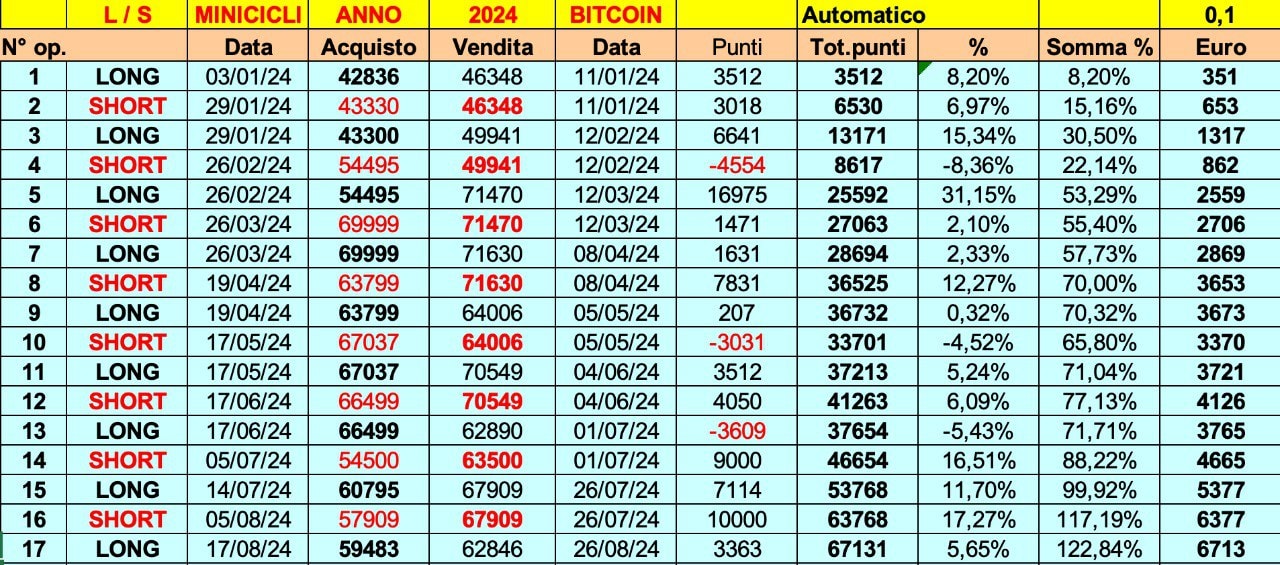 Ricordo che la volatilità sulle criptovalute (che ovviamente va considerato un fattore di rischio) può essere sfruttata tenendo delle SIZES basse, che sono poi quelle suggerite attraverso le STRATEGIE, di cui vi ho mostrato ieri le TABELLE.