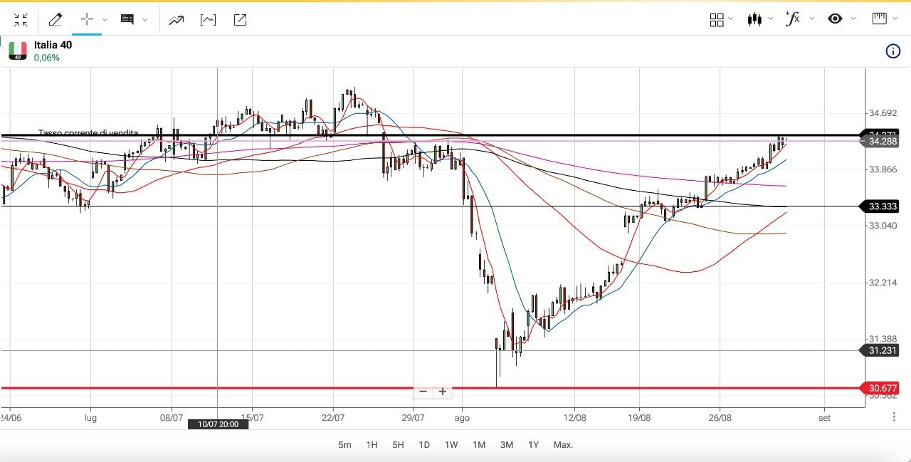 Ieri intanto il MIB non si è fermato superando agevolmente i 34000 punti e sfiorando i 34400 punti (ora siamo attorno ai 34300 punti circa).