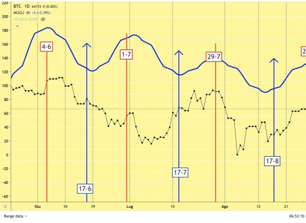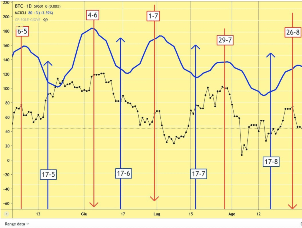 L’ONDA al RIALZO dei MINICICLI partita il 14 Agosto si è trovata perfettamente allineata all’andamento dei mercati, sia INDICI che CRIPTO, così come lo era stata quella precedente al RIBASSO.