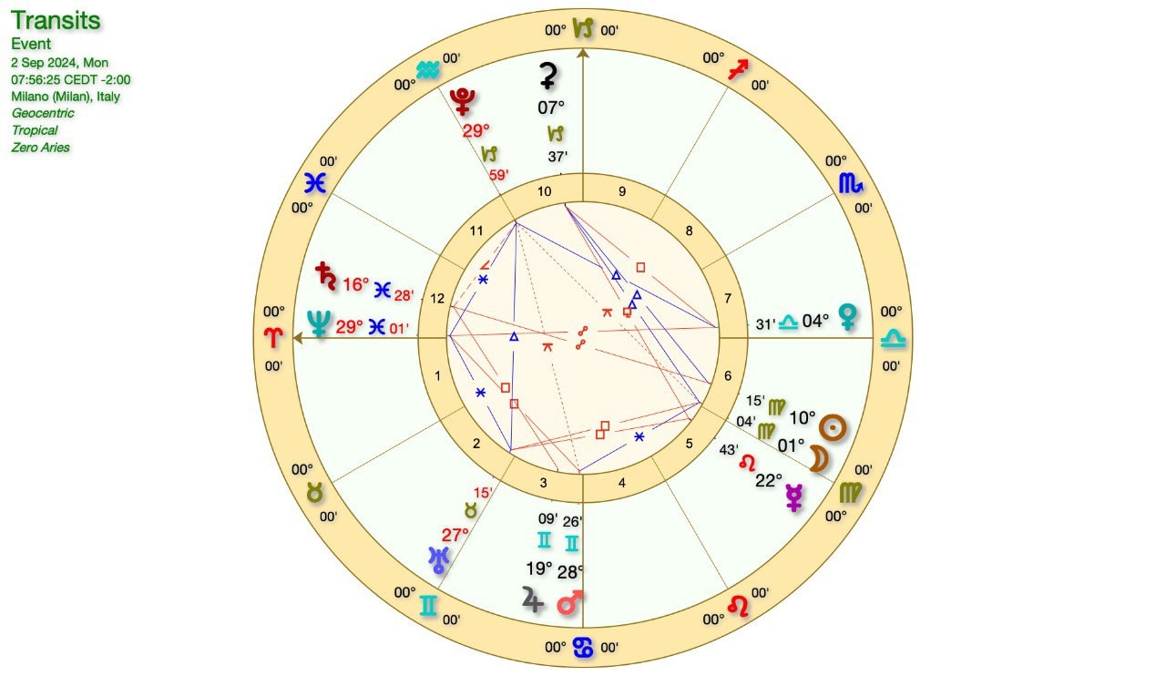 L’OPPOSIZIONE SOLE-SATURNO (al grado il giorno 8 Settembre) precede l’OPPOSIZIONE SOLE-NETTUNO (al grado il 21 Settembre).