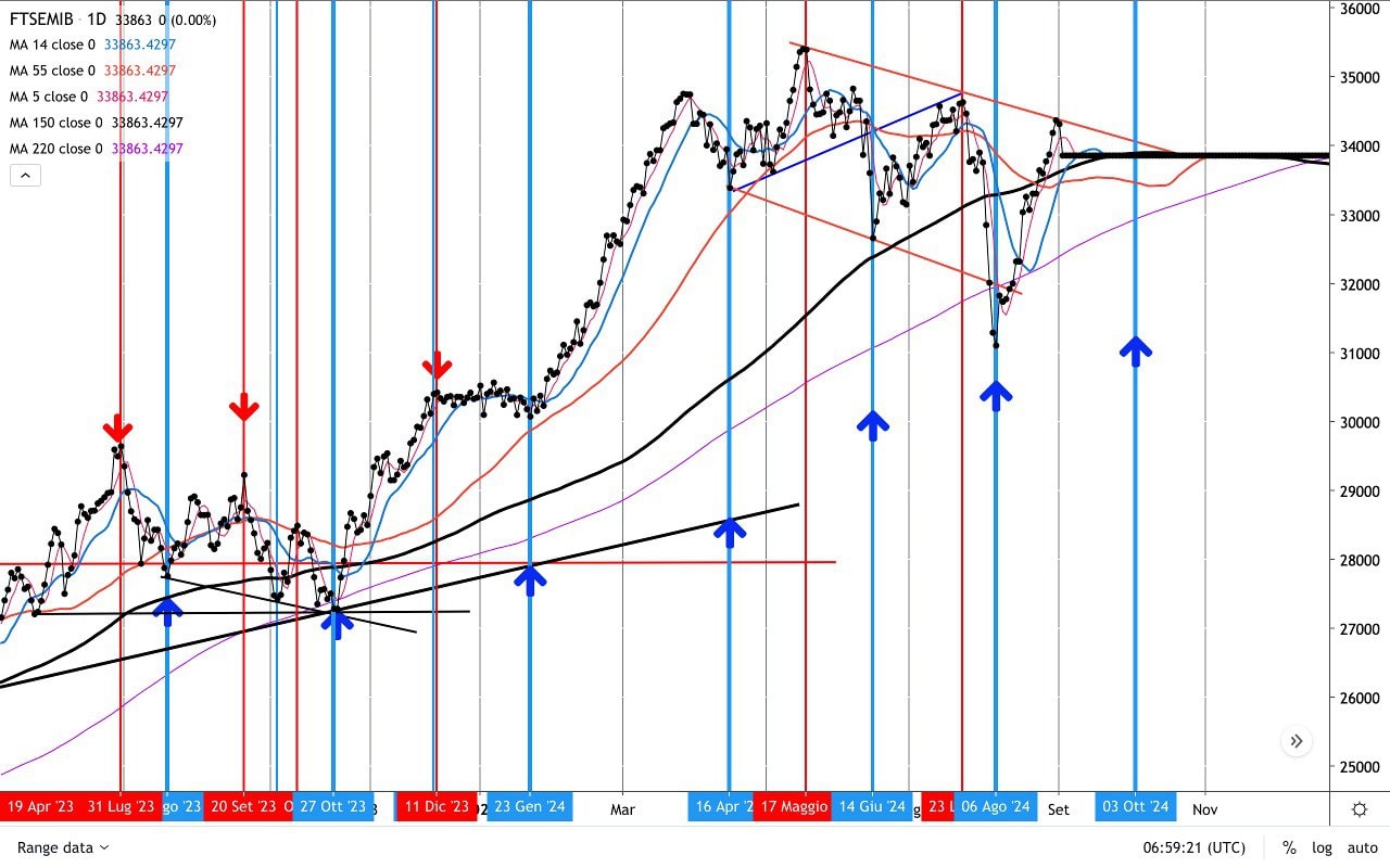E’ certamente utile riprendere l’ANALISI TEMPORALE sul FTSE MIB.