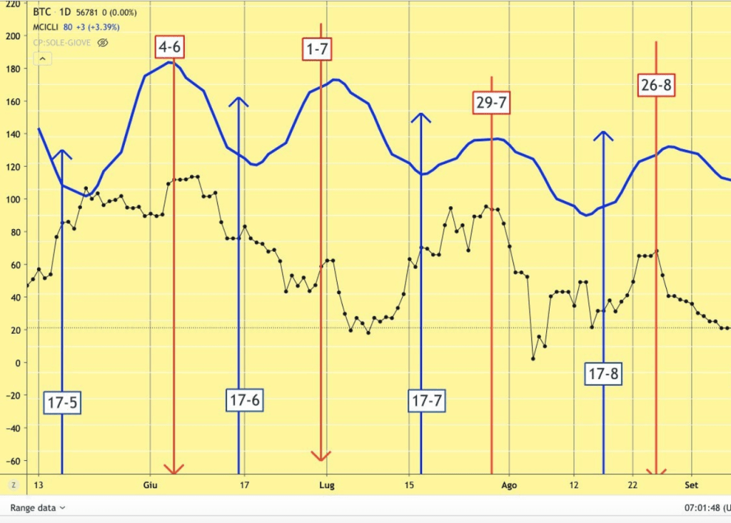 Ci aspettavamo un MINIMO importante nella prima quindicina di Agosto (a distanza di circa 2 mesi dal precedente MINIMO di metà Giugno) e questo è arrivato, dando poi origine ad una forte ripartenza.