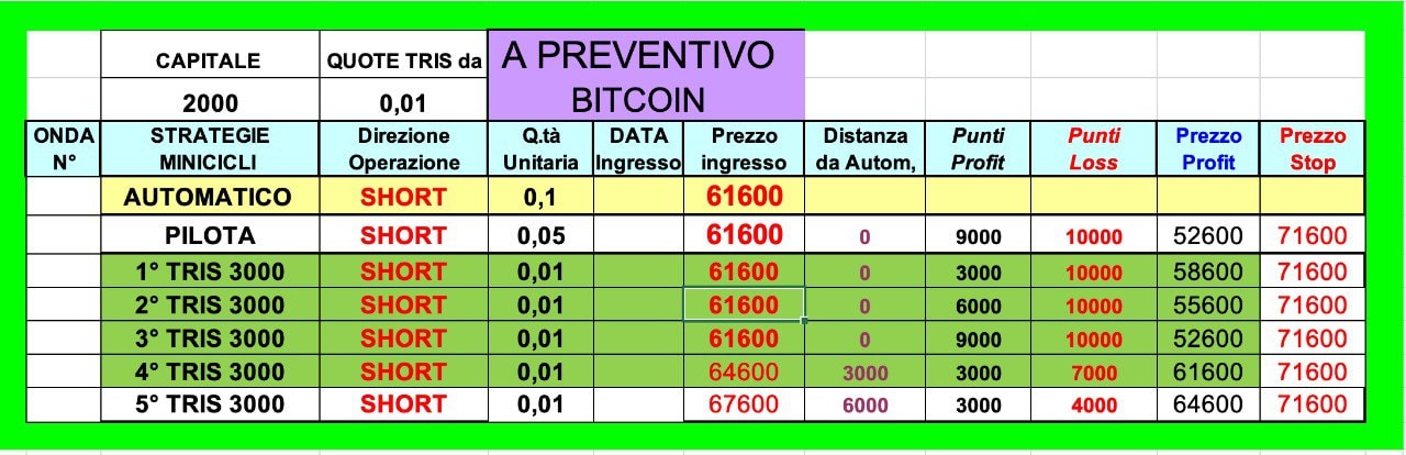 Su ETHEREUM la discesa rispetto all’ingresso è stata di circa 500 dollari, dai 2670 a 2170 dollari (vi risparmio i dettagli delle quote) ma in realtà ETHEREUM era arrivato a 2800 dollari prima della discesa, quindi ha percorso al ribasso 600 dollari, che è la “misura ottimale” della STRATEGIA PILOTA.