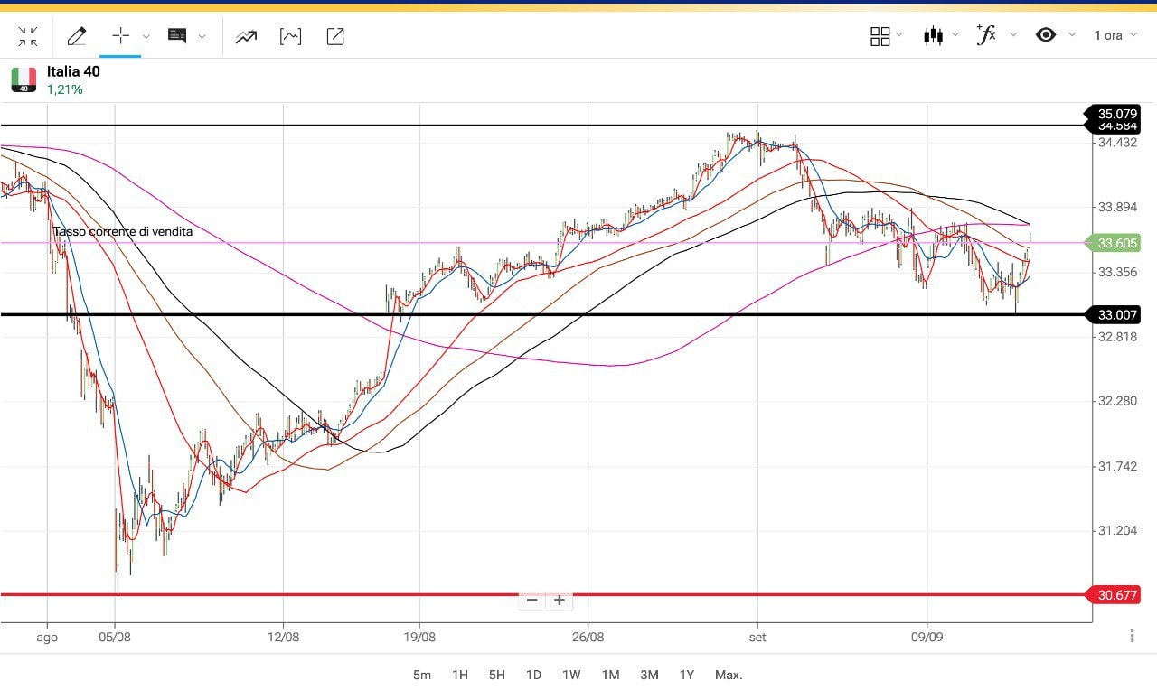 Era il 13 di Agosto, quando il MIB si trovava sotto i 32000 punti, prima di accelerare verso l’alto e “strappare” sopra i 33000 il giorno 16 Agosto.