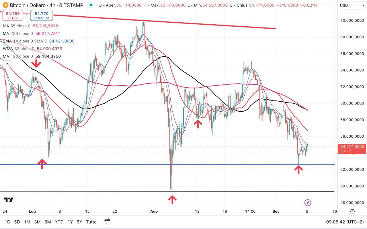 Qualcuno ha giustamente provato anche a sfruttare il rimbalzo dai 54000-55000 dollari.