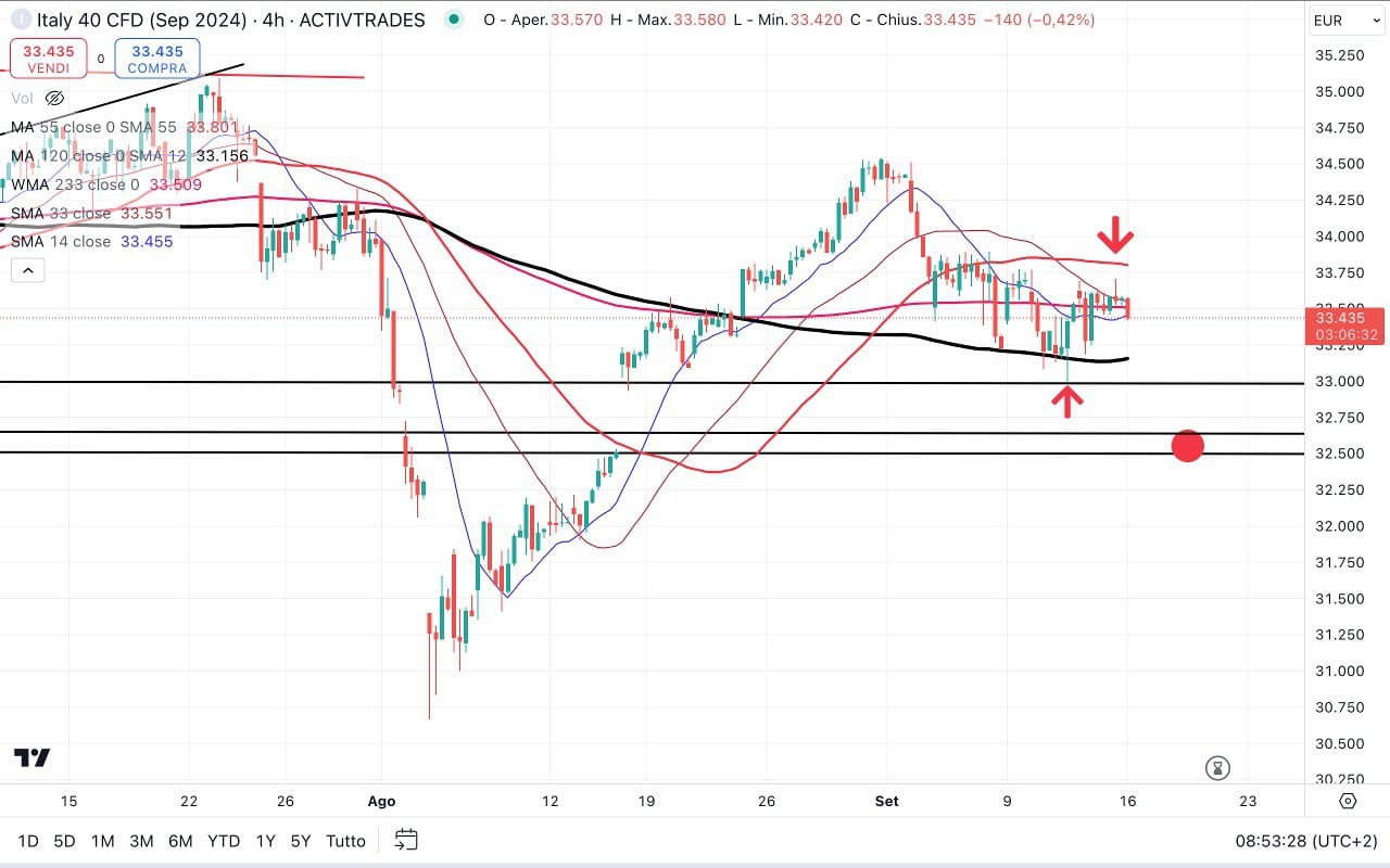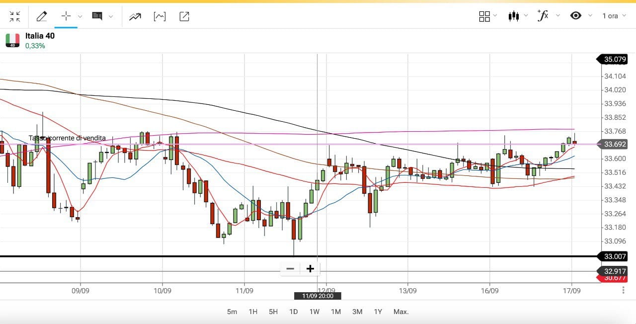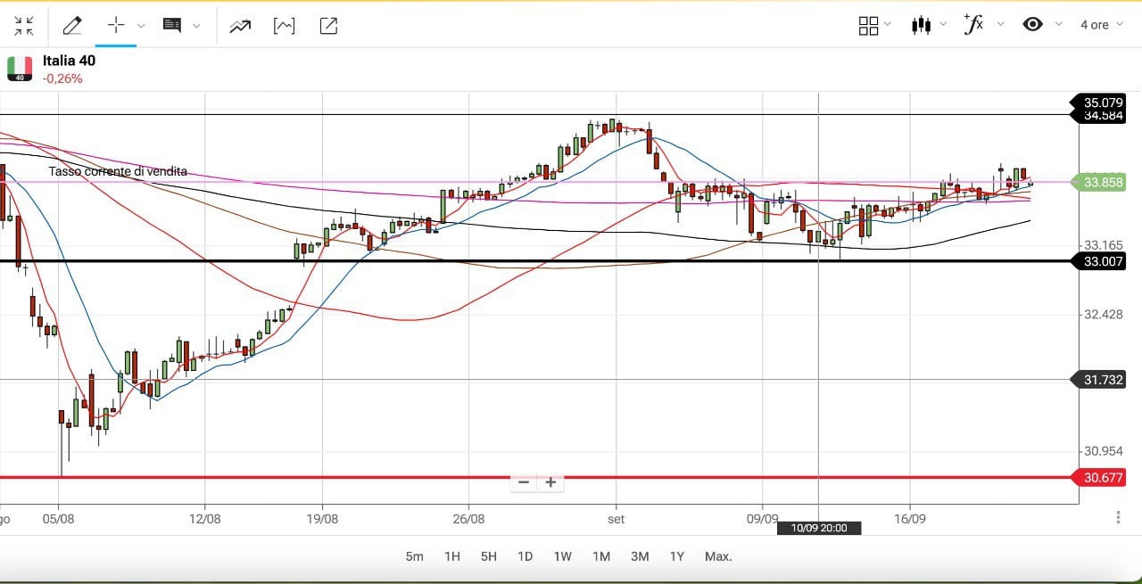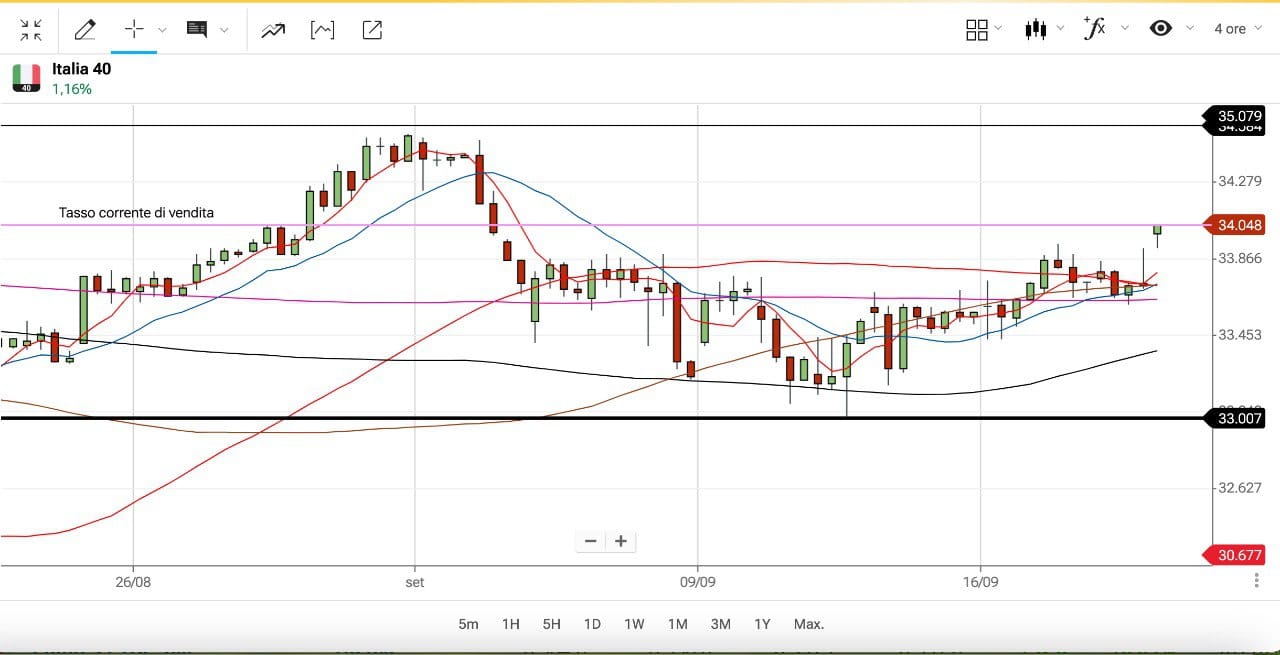 Il future Settembre si trova attorno ai 34050, che sulla scadenza Dicembre corrisponde all’incirca ai 33950 punti.