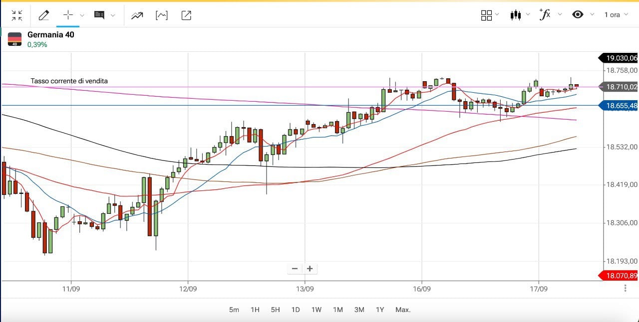 Vediamo anche il DAX future, ora a 18700 punti.