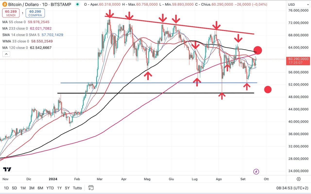 Nel frattempo il BITCOIN si trova attorno ai 60300-60500 dollari.