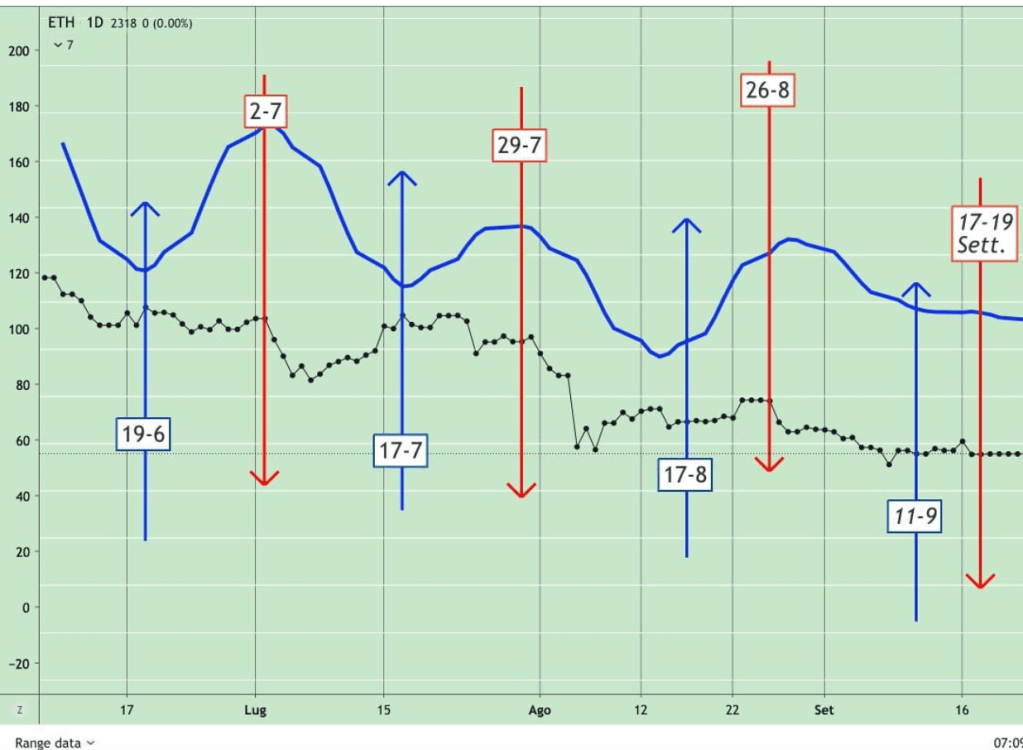 Possiamo dire che la LETTURA della settimana scorsa, in riferimento alla MINI ONDA al RIALZO dei MINICICLI (tendenzialmente dal 10-11 al 18-20 Settembre) si è rivelata giusta, anche se poteva essere senz’altro sfruttata meglio a livello operativo…