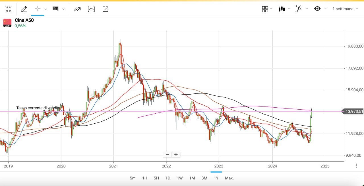 Per capire cosa è successo nell’ultima settimana diamo un’occhiata al grafico dell’INDICE CINESE A50…