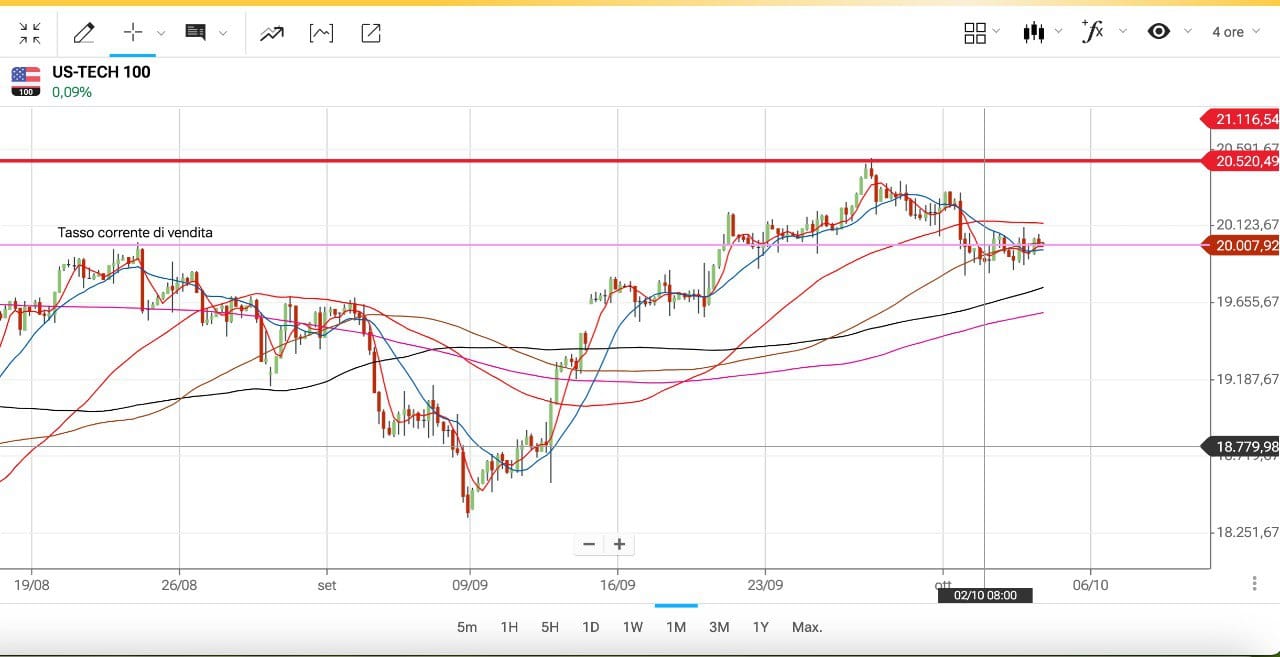 L’impressione è che dopo il MASSIMO del 26 Settembre poco sopra i 20500 punti e la discesa sotto i 20000 punti, il ritracciamento non sia ancora terminato (cioè che vi sia ulteriore spazio).