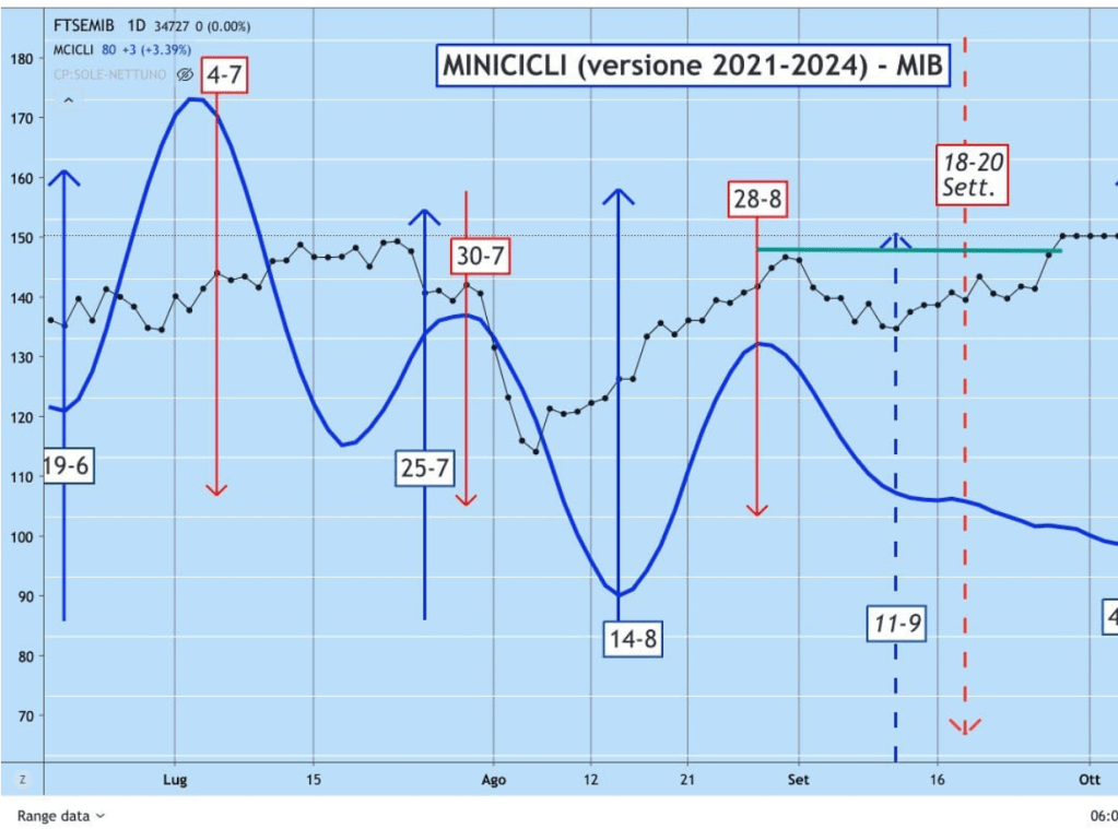 Ci troviamo, come sapete, verso la fine della lunga ONDA al RIBASSO e ieri vi ho già mostrato l’estensione dei MINICICLI fino a fine Ottobre.