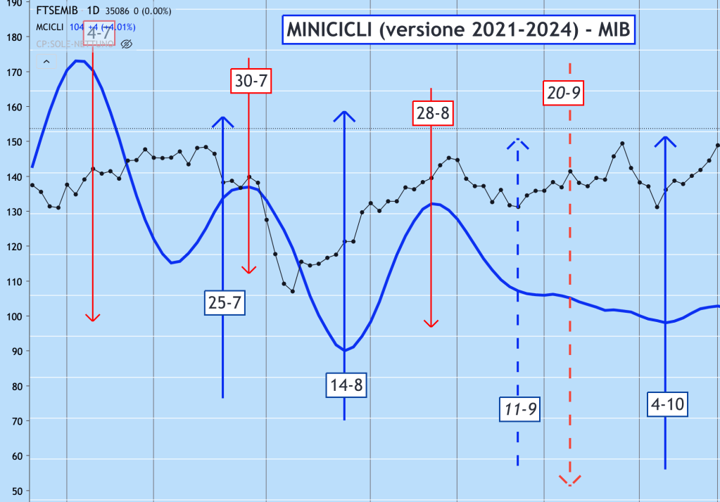 Sotto riprendiamo i CICLI di MARTE sul FTSE MIB.