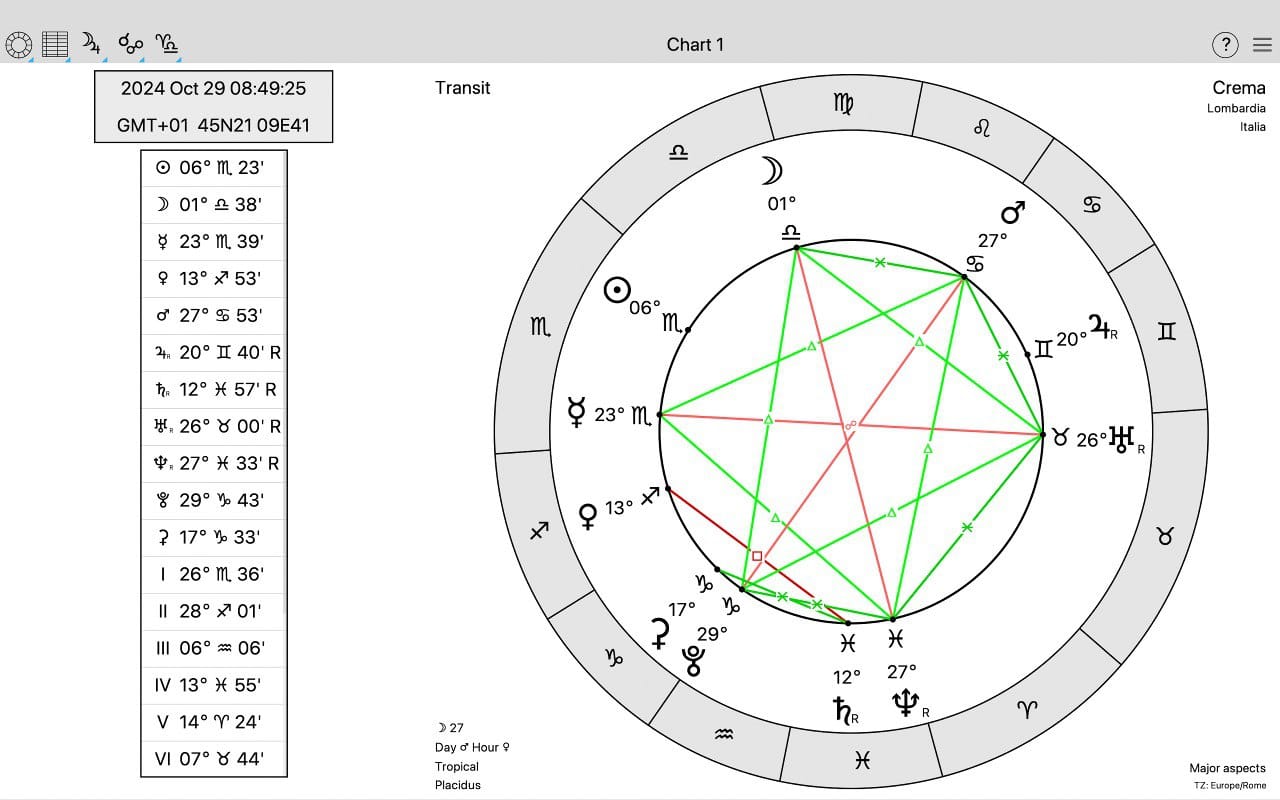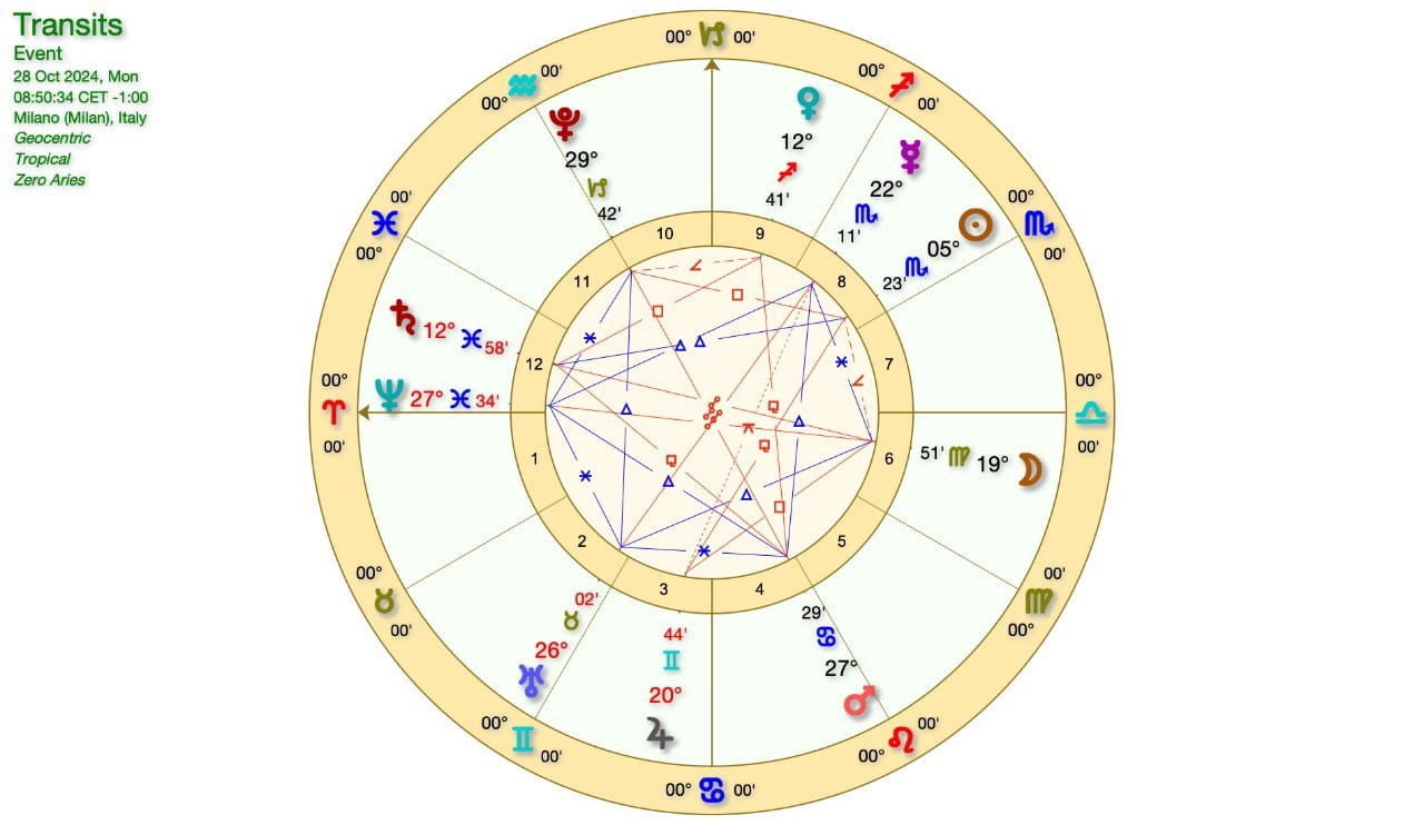 Il grafico astrologico è davvero molto suggestivo, con numerose figure geometriche al suo interno.