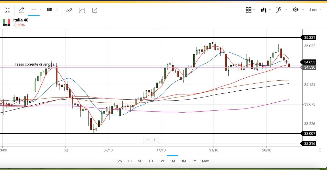 Il MIB è rimasto per ora sulla soglia dei 34000 punti, là dove avevamo auspicato almeno una paio di settimane fa.
