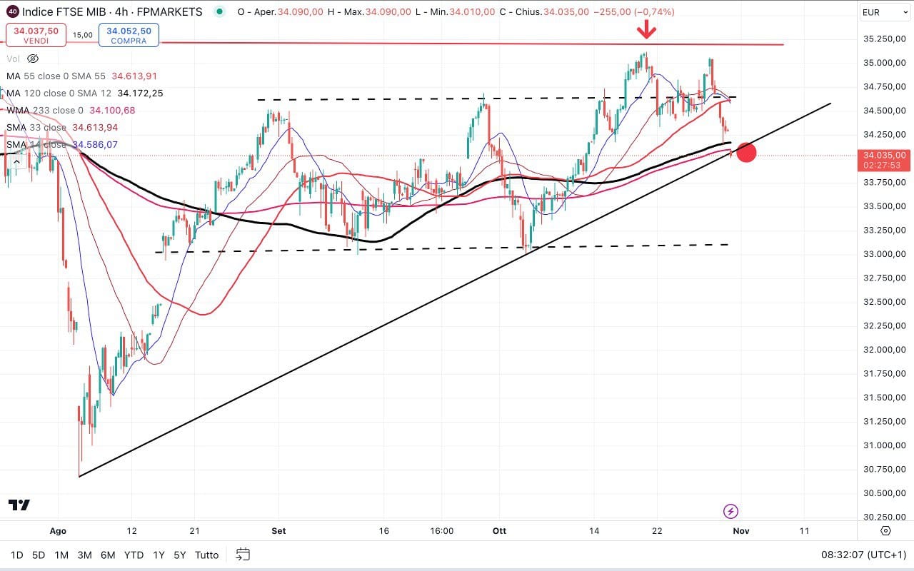 Il MIB future si trova dove avevamo ipotizzato, cioè tra i 34000 e i 34100 punti.