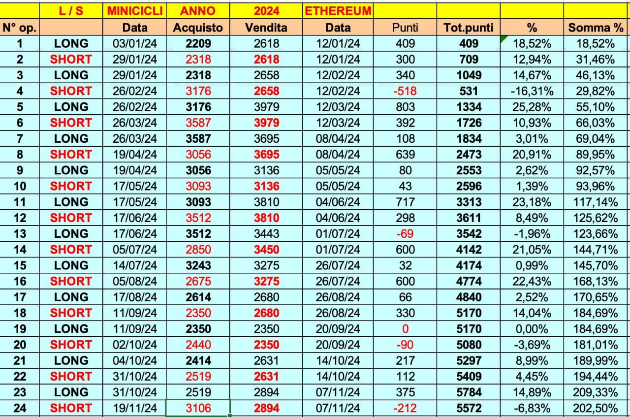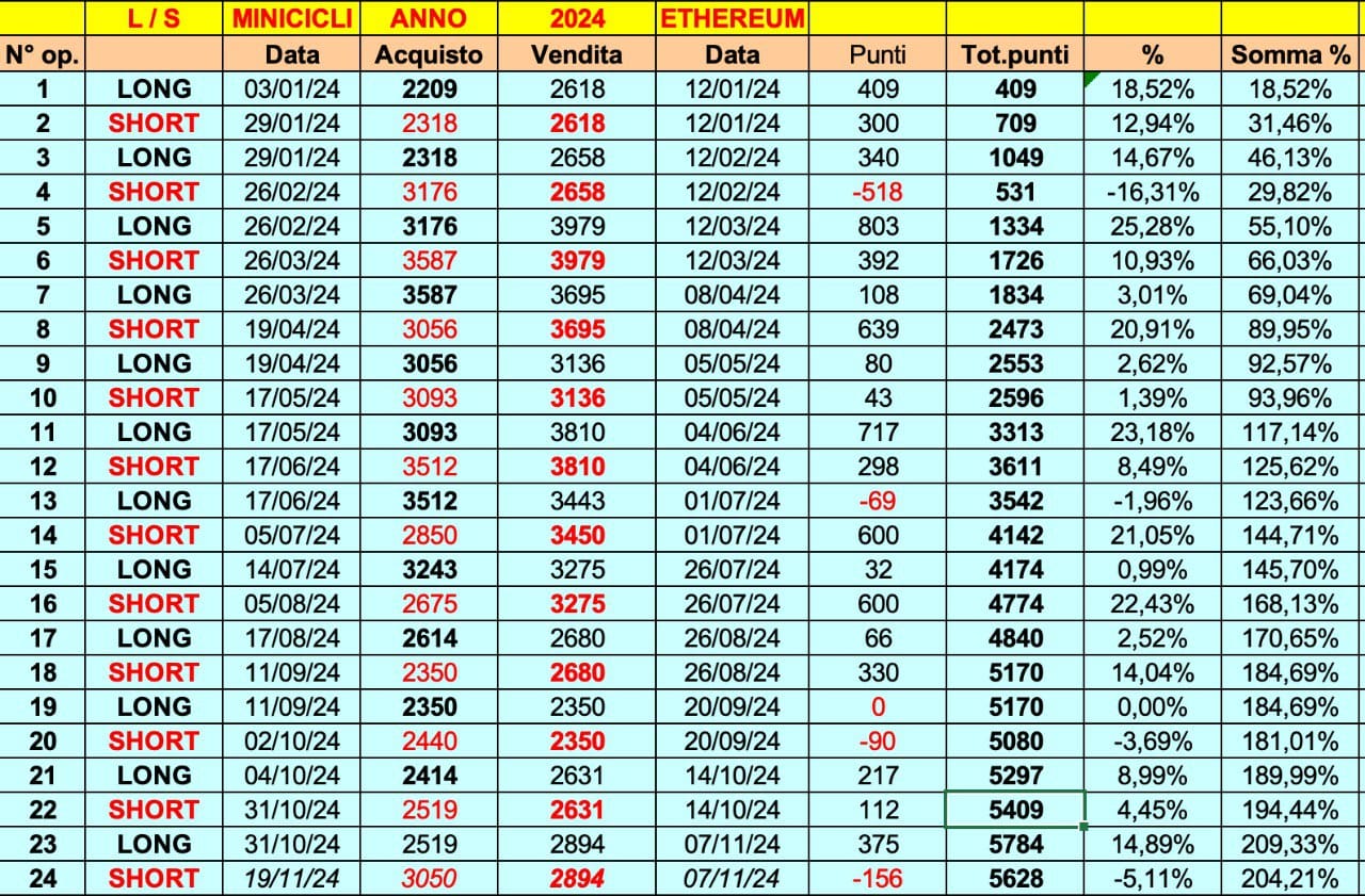 Ieri abbiamo comunque visto che il BILANCIO annuale dei MINICICLI su INDICI e CRIPTOVALUTE è nettamente in POSITIVO, con risultati strabilianti proprio su BITCOIN ed ETHEREUM.