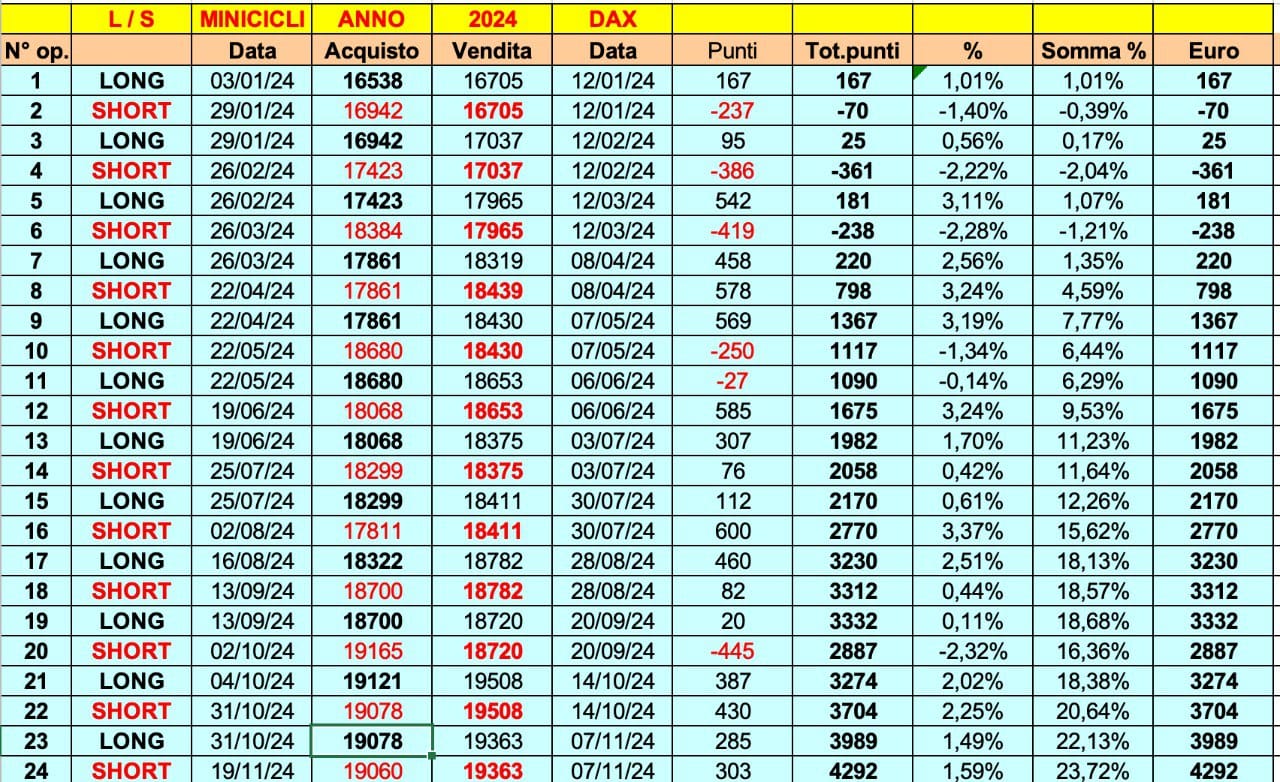 Sappiamo che questo conteggio, specialmente verso fine anno, è molto importante per capire se i MINICICLI hanno mantenuto quella MEDIA STORICA ottimale con un determinato mercato, che deve servire anche come BASE per il FUTURO.