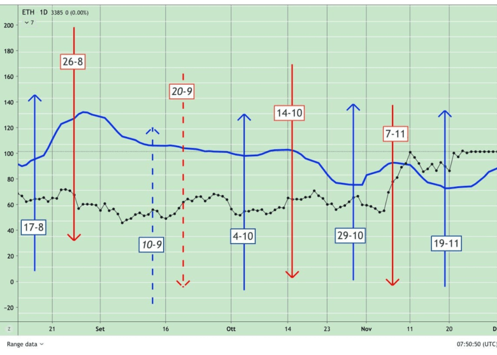 Correlazione davvero eccezionale tra i MINICICLI ed ETHEREUM.