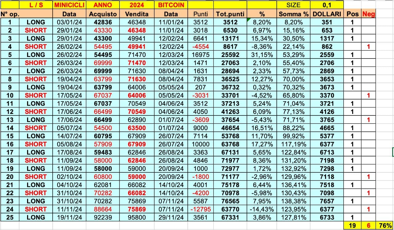 Ora BITCOIN (sempre nella correlazione con le ONDE dei MINICICLI.