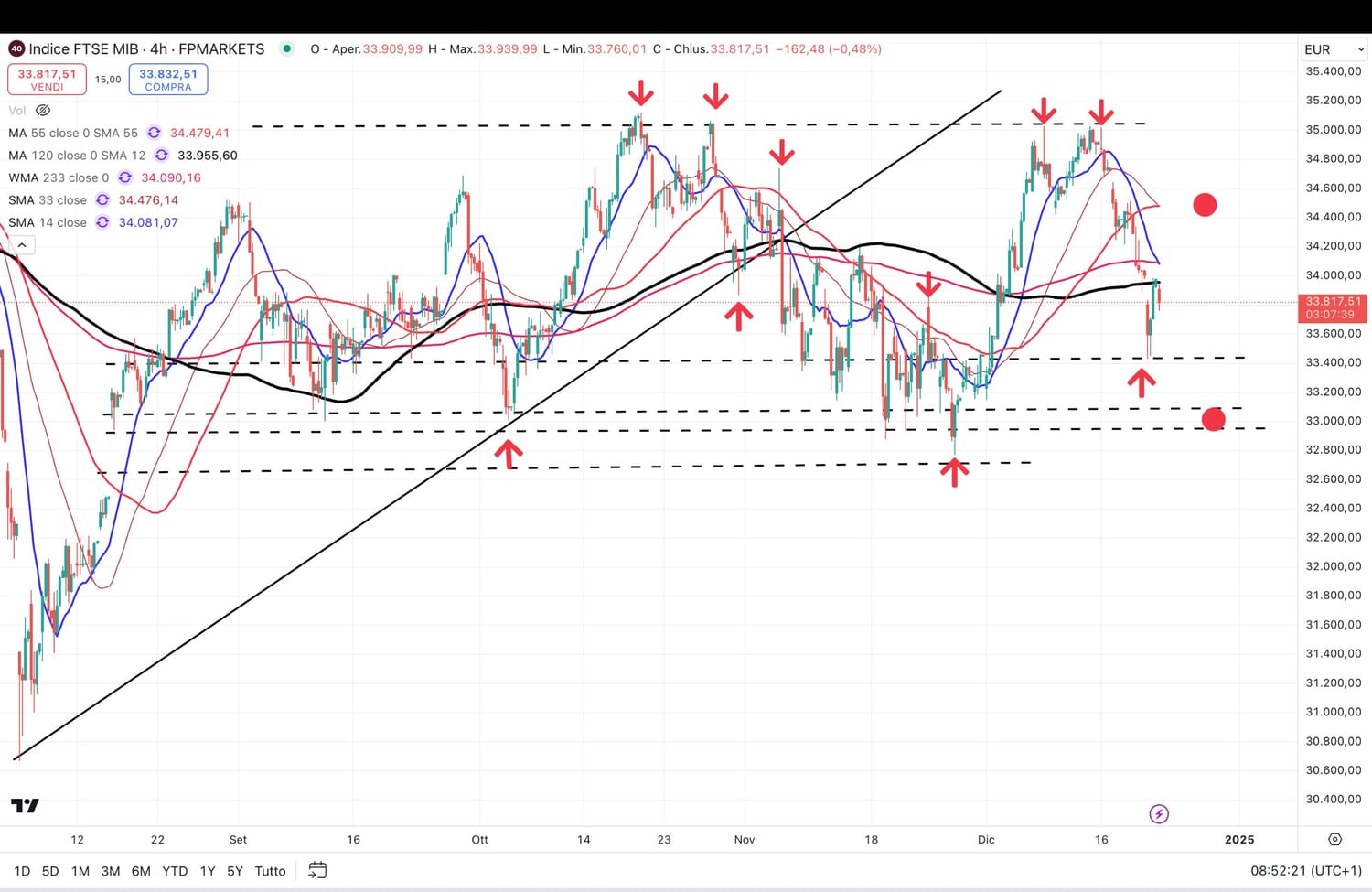 Sul MIB sono riprese oggi le contrattazioni dopo la pausa natalizia e ci troviamo a cavallo dei 34000 punti.