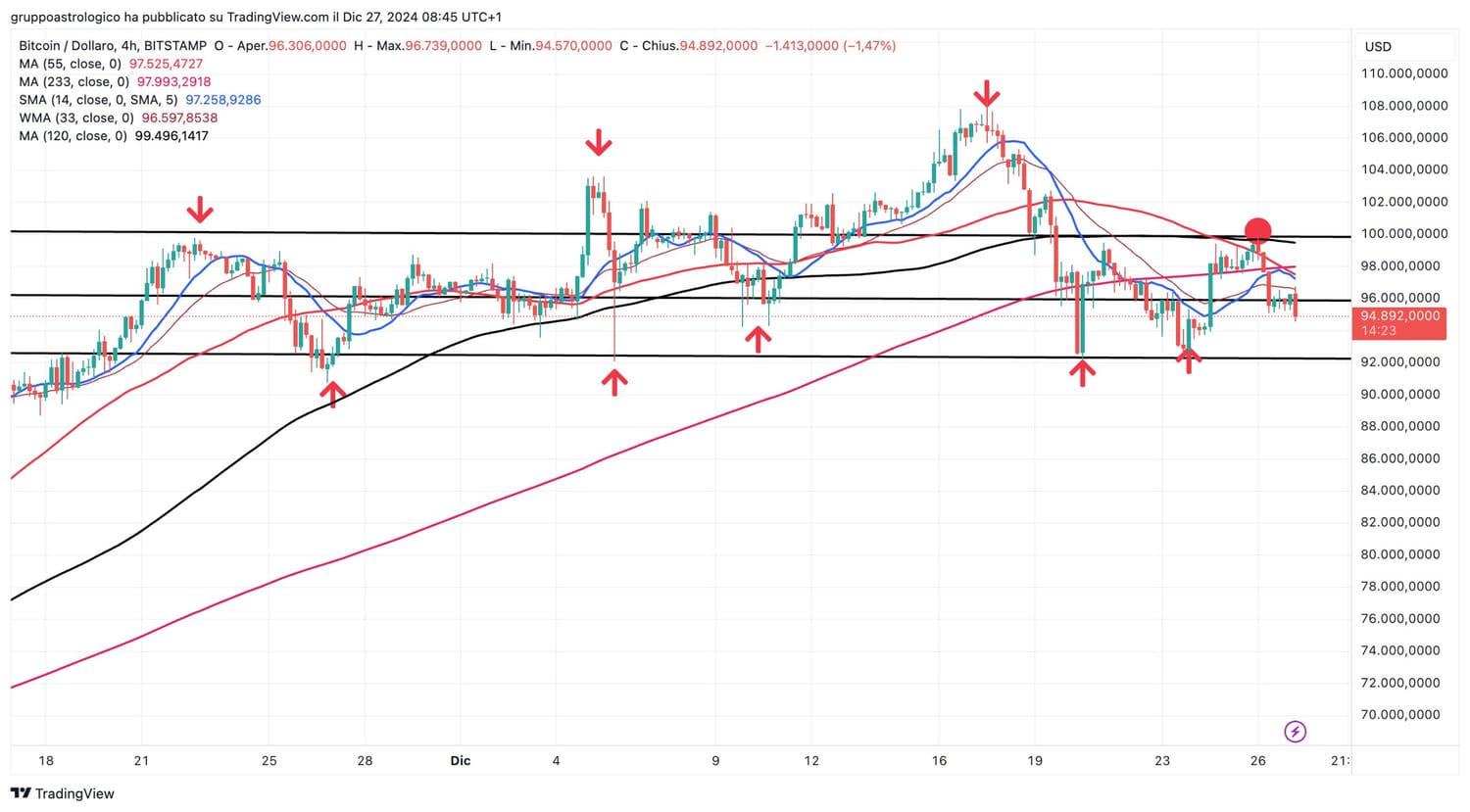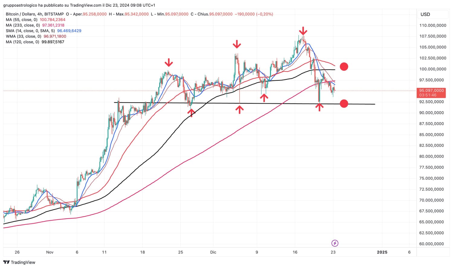 Dopo aver raggiunto tale livello la tendenza è tornata ribassista, con il prezzo che ora oscilla attorno ai 94500 dollari.