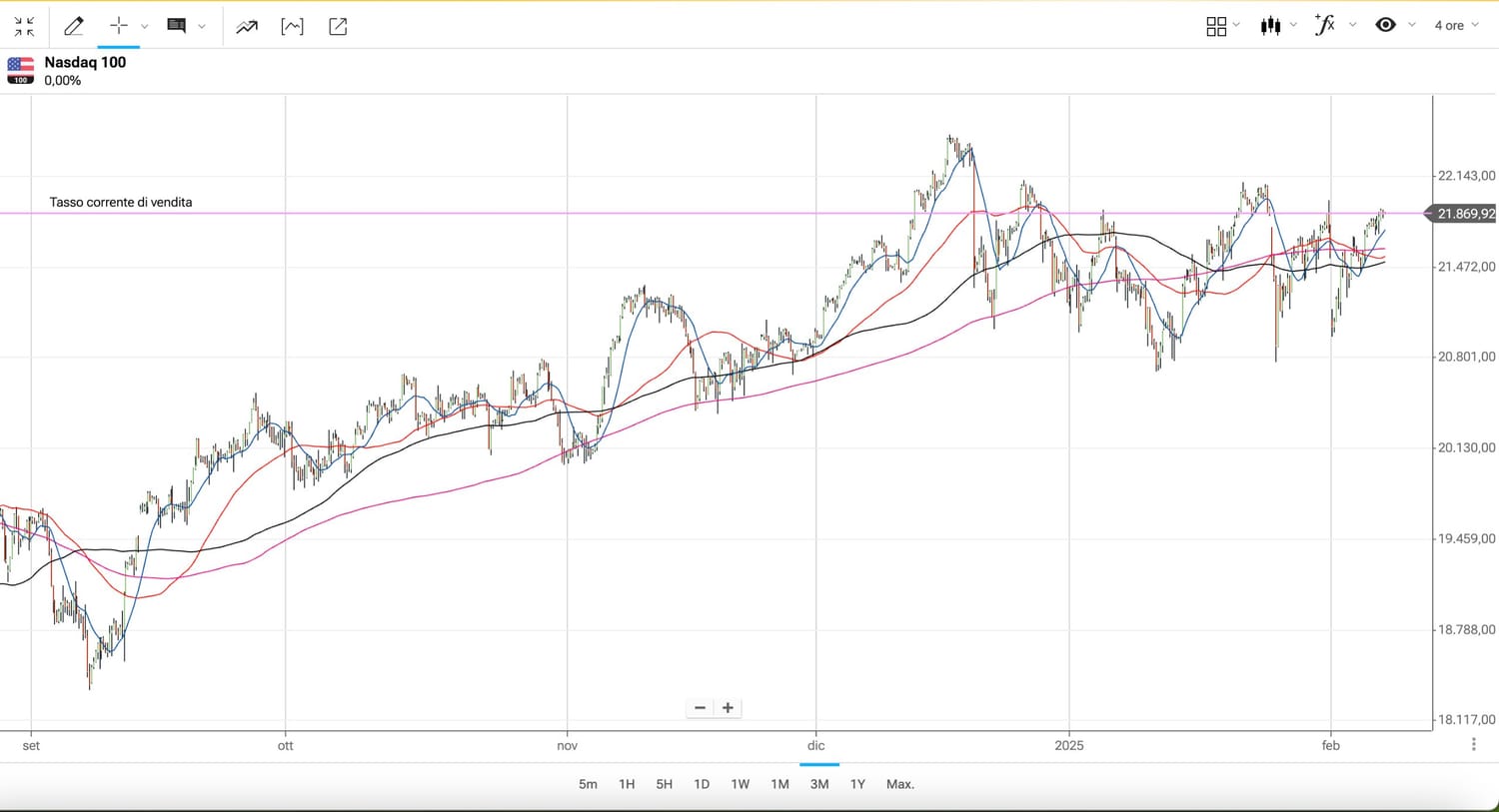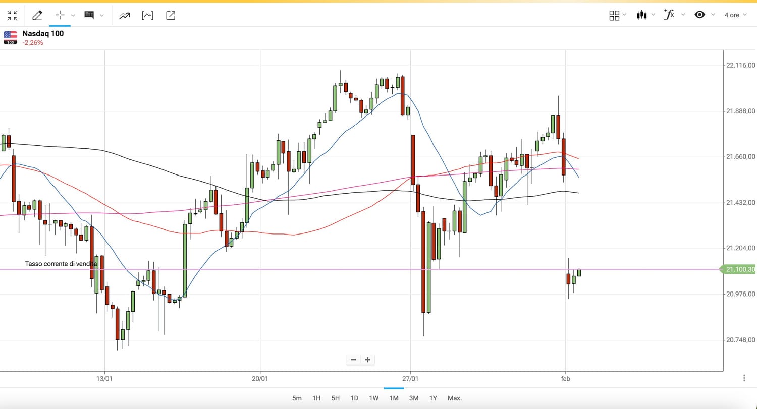 Stesso discorso ovviamente su NASDAQ 100, che Venerdì era tornato poco sotto i 22000 punti, ed ora sulla soglia dei 21000 punti.