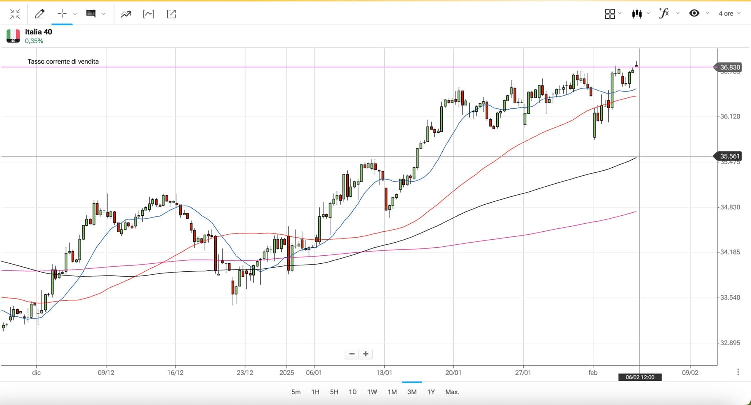 Stamattina l’apertura del MIB è stata sopra i 36900 punti, che è il massimo del periodo.