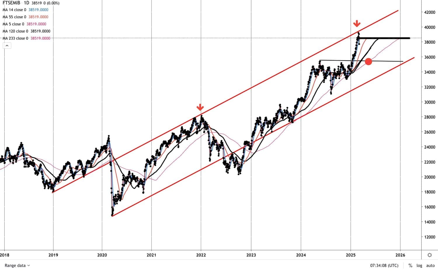 Vediamo però anche un grafico giornaliero di lungo periodo proprio sul Ftse Mib.
