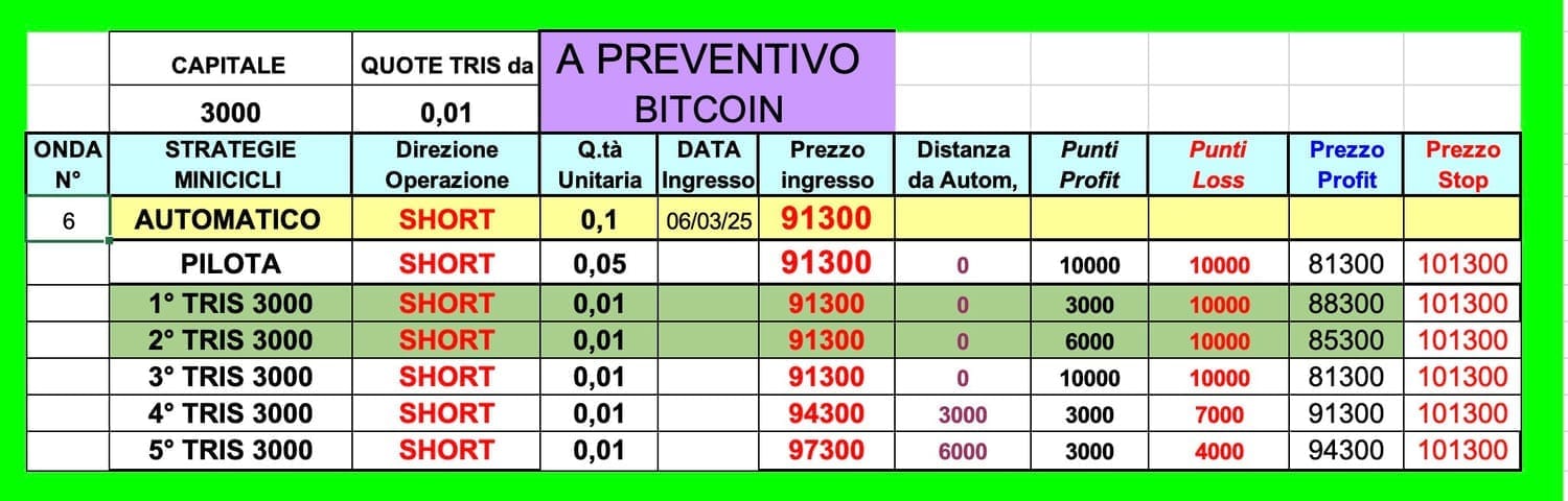 Ingresso short 2° quota a 91300 / take profit a 85300 (già scattato)
