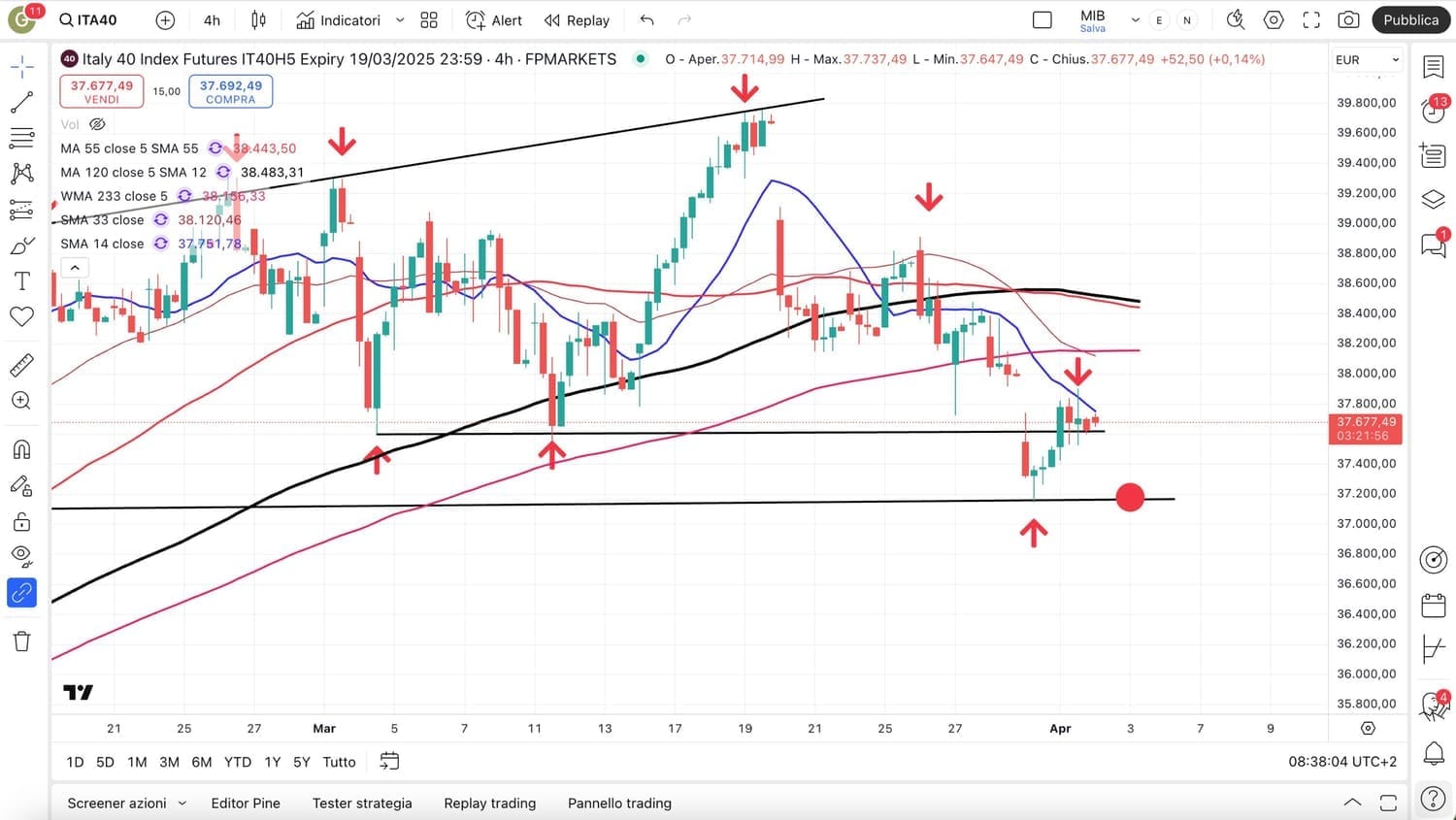 Intercettata la MEDIA MOBILE rossa a 55 periodi sul grafico a 4 ore.