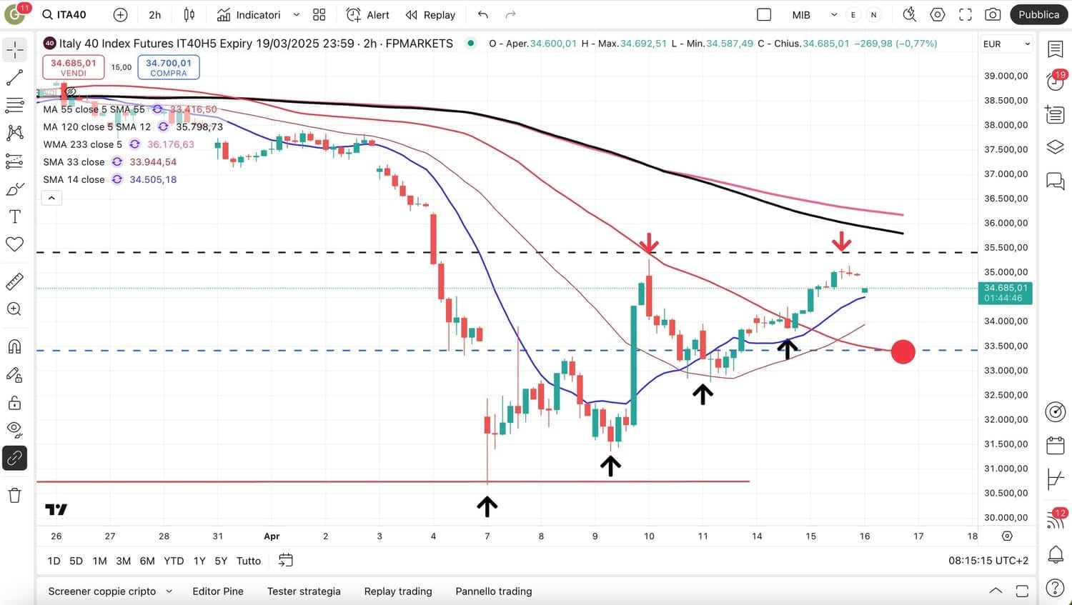 Grazie al take profit di ieri pomeriggio si sono recuperati circa 4000 punti sul MIB in 7 sedute!