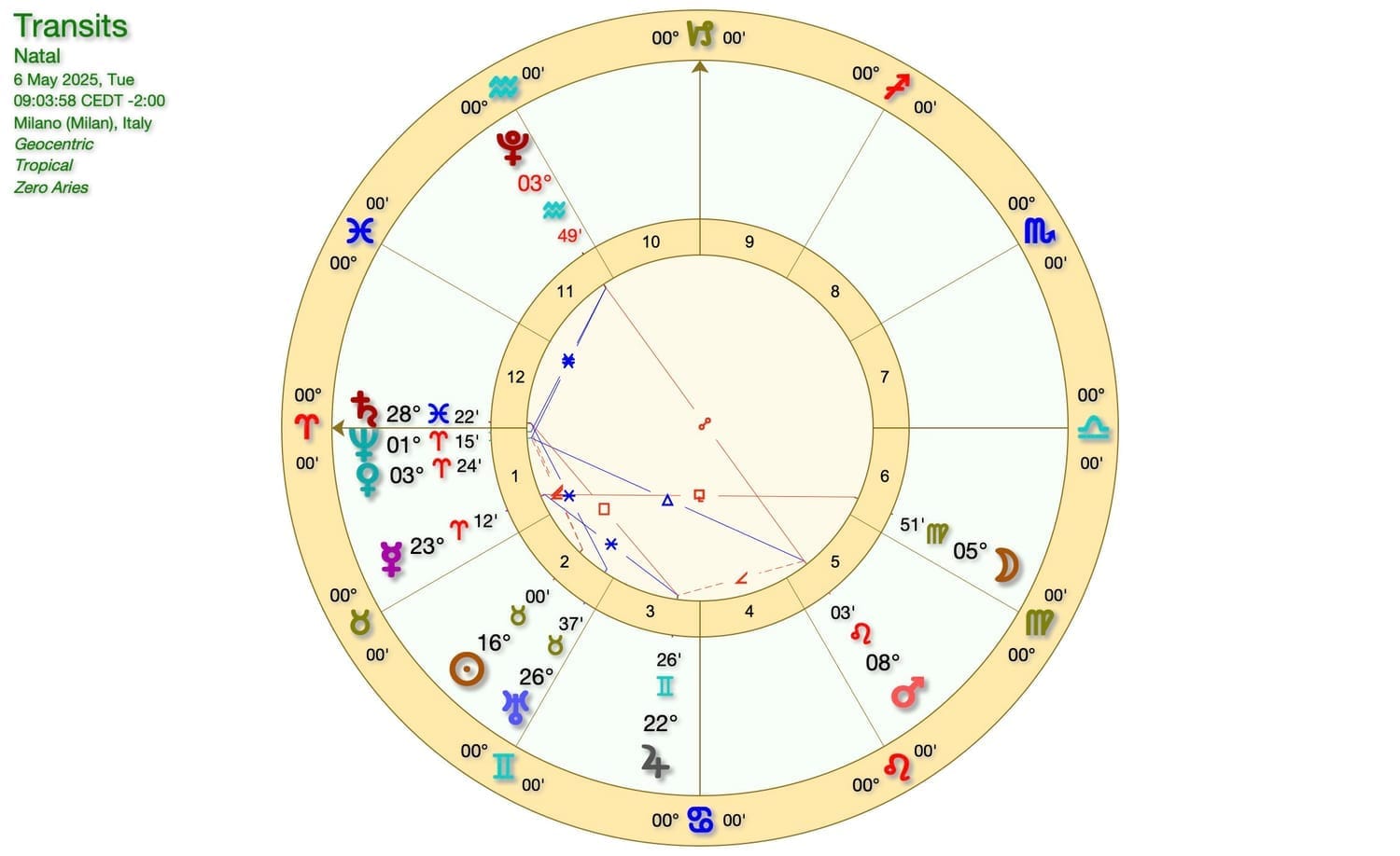 Diamo un’occhiata al grafico astrologico.